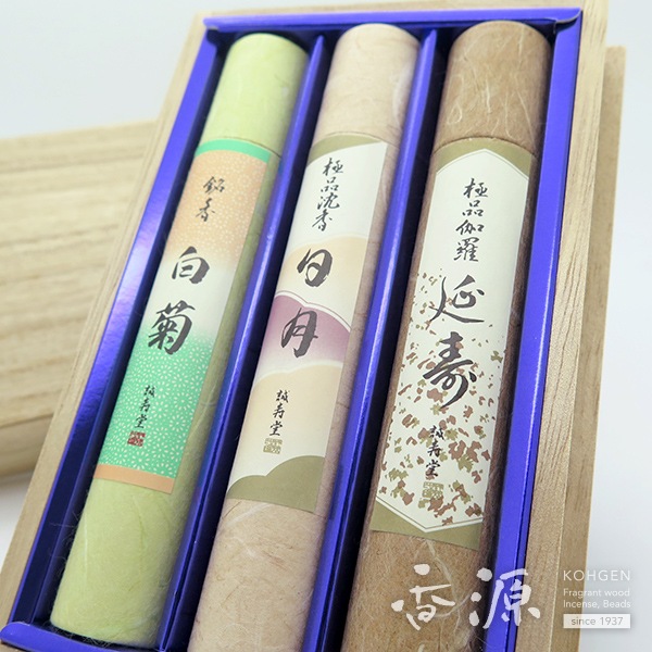 誠寿堂 お線香 贈答用 ギフト 極品伽羅延寿 極品沈香日月 銘香白菊 印籠3本入アソート 桐箱